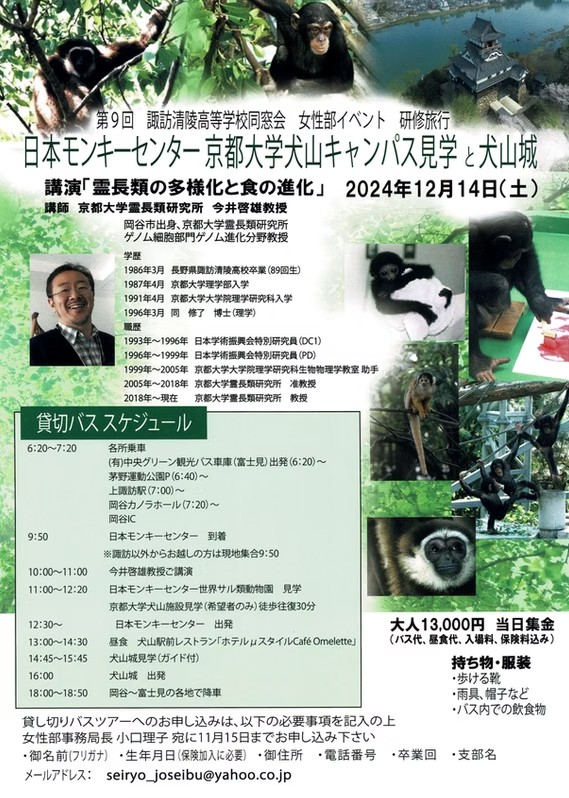 12/14(土) 女性部イベント「日本モンキーセンター京都大学犬山キャンパス見学と犬山城」を行いました。