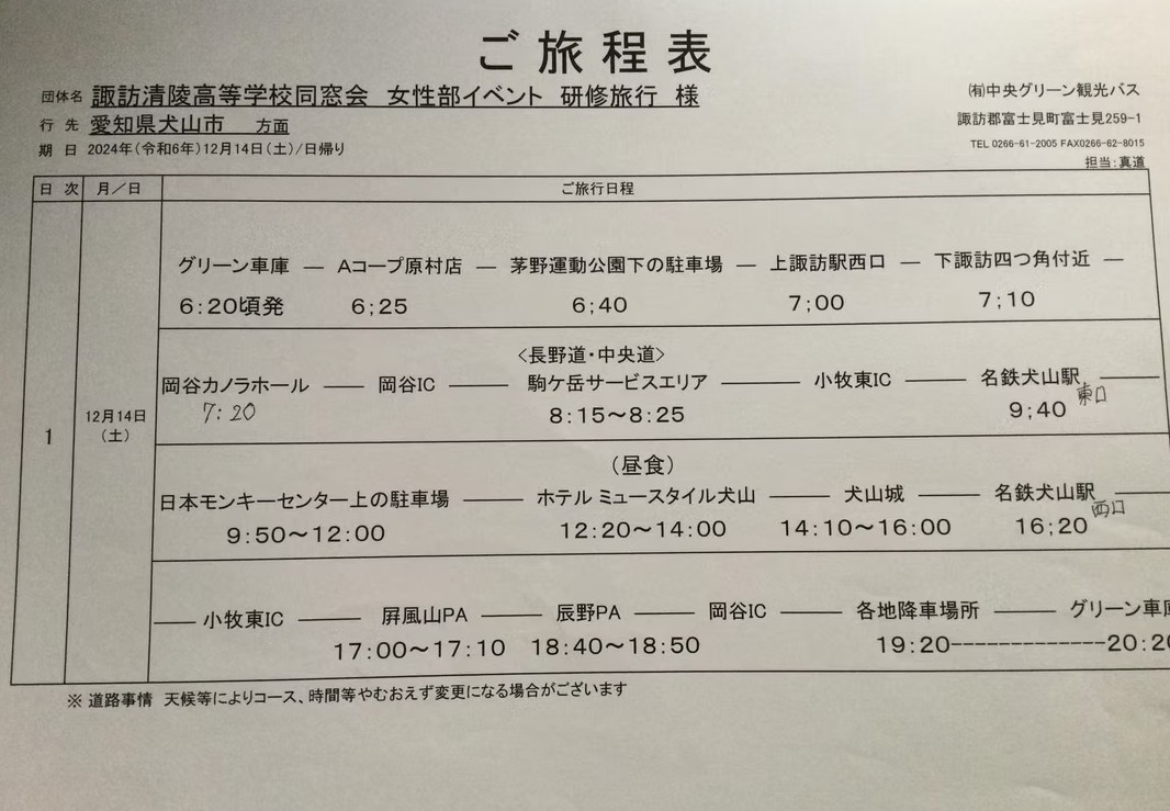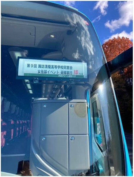 当日出発時は雪、路面凍結❄️岡谷では大粒の雪がどんどん降ってきてどうなることかと思いましたが、バスの中は既に熱い懇親会が繰り広げられていました。