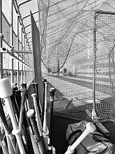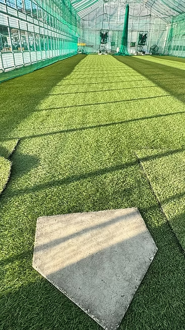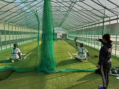 初のベスト8へ 鳥かごの中では二人同時に打撃練習ができる。おもいきりボールを打つことができる